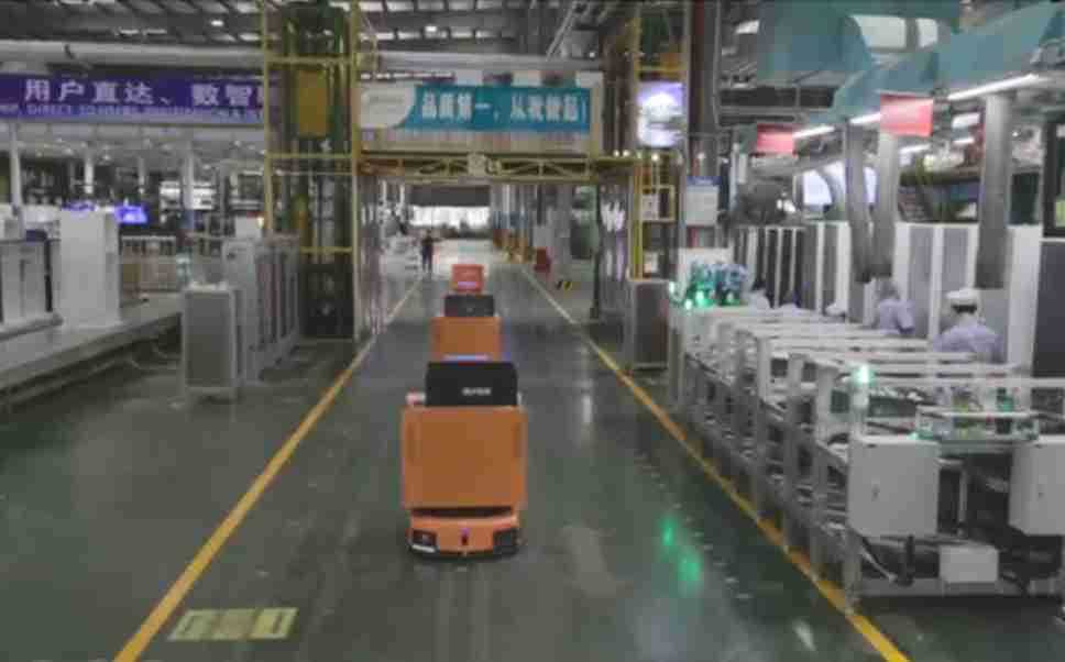 为车载冰箱物流配送打造的智能解决方案,,包含产中物流通过潜伏举升AMR搬运至线边,,产后成品物流智能仓储,,流程包含产中物流智能齐套入库,,,线边安灯叫料AMR智能配送至线边,,,,成品入库、、、、出库,,,,通过无人堆高车机器人,,,智能仓储管理替代人工作业管理,,,,实现更高存储、、、、更高效率、、更具柔性化的解决方案。。。